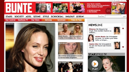 ..."bunte.de" gemacht. Auch hier: Weniger Kleinteiliges, mehr zum Schauen. "Sinnlicher und bildlastiger" heißt es in einer Eingenbeschreibung. Auch wenn der Auftritt zunächst gewöhnungsbedürftig anmutet: Das Design gibt dem Burda-Produkt im Netz ein eigenes, unverwechselbares Gesicht.