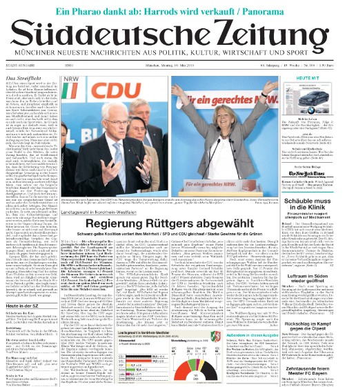 Ähnlich wie die "FAZ" bewirbt sich auch die "Süddeutsche Zeitung" nicht gerade um den Titel für die originellste Verarbeitung der NRW-Landtagswahl.Bild-Quelle: sueddeutsche.de