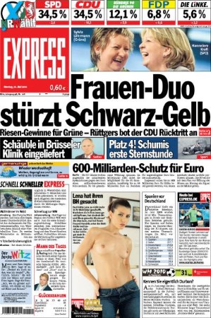 Die Kölner Boulevard-Konkurrenz trifft nicht nur den Sachverhalt eher - nicht Kraft allein, sondern ein "Frauen-Duo" hat Schwarz-Gelb gestürzt - sondern kommt insgesamt frischer daher.Bild-Quelle: Meedia