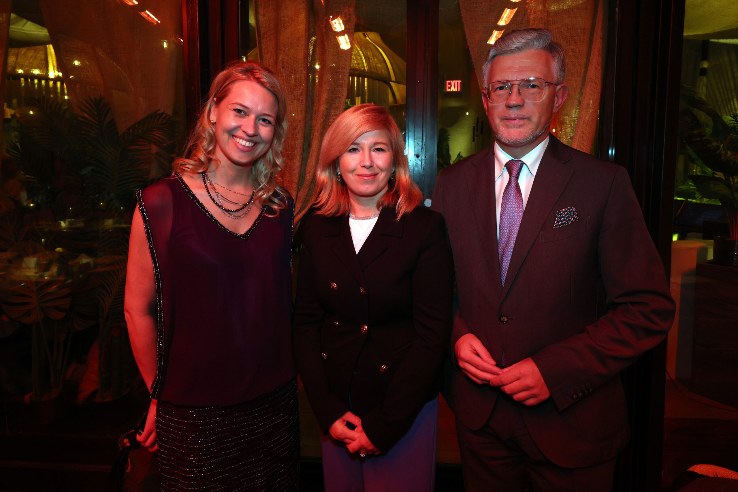 Neben Andrij Melynk und dessen Ehefrau waren auch zahlreiche Kreative, Produzentinnen, Sendervertreter und internationale Partner zum NRW-Dinner nach Manhatten gekommen, darunter das "Herrhausen"-Team um Regisseurin Pia Strietmann und Hauptdarsteller Oliver aber auch Schauspielerin Mala Emde, die gerade als Beste Schauspielerin für "Köln 75" mit einem Bambi ausgezeichnet wurde, und Schauspieler Emilio Sakraya ("Rheingold"), der bei der iEmmy-Verleihung als Presenter auf der Bühne stehen wird.