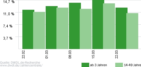 In nicht allzu guter Form präsentiert sich unterdessen die "Lindenstraße", die am Sonntag nur noch 2,42 Millionen Zuschauer ins Erste lockte. Der Marktanteil belief sich auf ernüchternde 8,8 Prozent. Den anschließenden "Weltspiegel" wollten sogar nur 2,24 Millionen sehen. Ungleich erfolgreicher war das das ZDF unterwegs, das mit seiner vorerst letzten "Deutschland-Saga" bei "Terra X" auf 4,30 Millionen Zuschauer kam. Um 20:00 Uhr übernahm jedoch die "Tagesschau" das Zepter: Alleine im Ersten schalteten 7,33 Millionen Zuschauer ein.